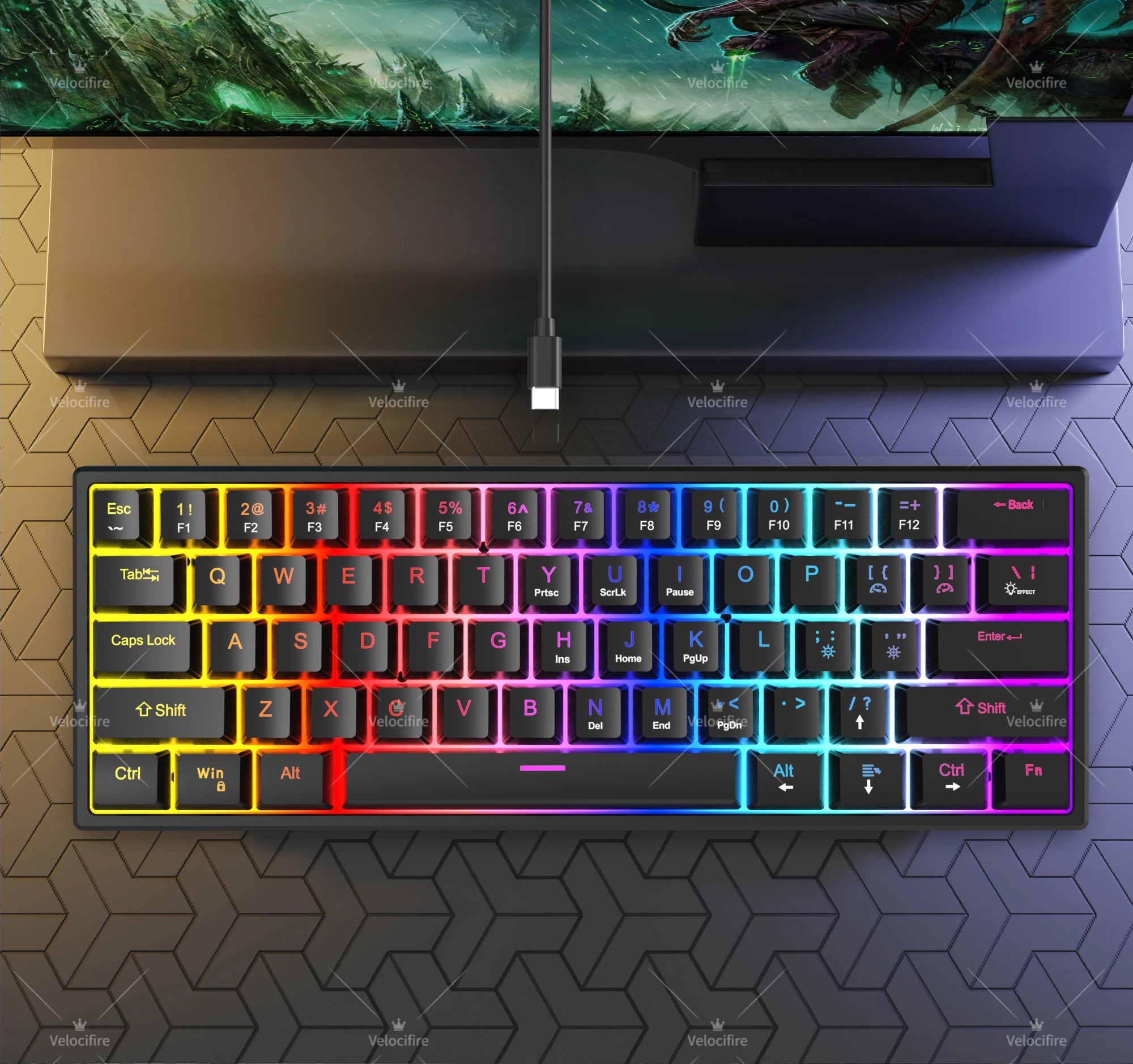 2. LED lighting effect: left and right running, 9 modes, gorgeous lighting, press "FN" + "\|" to switch.