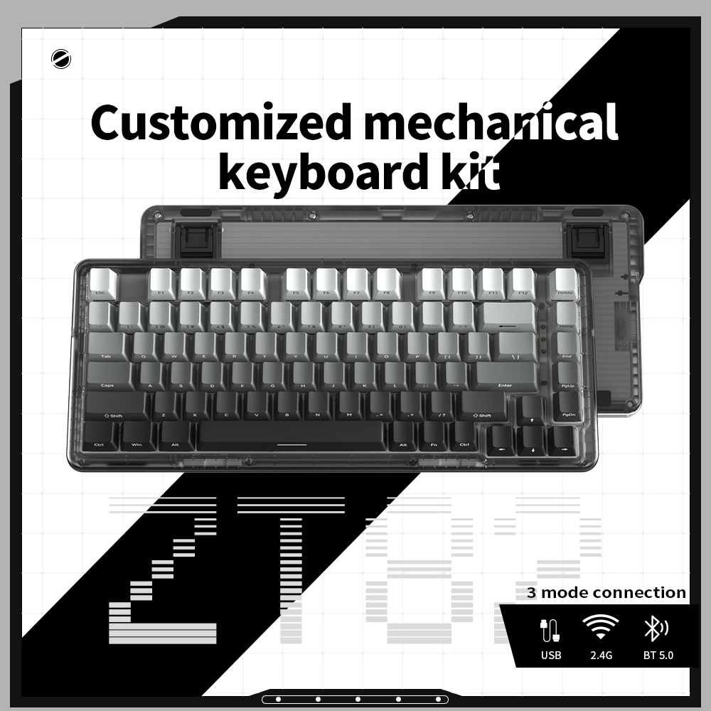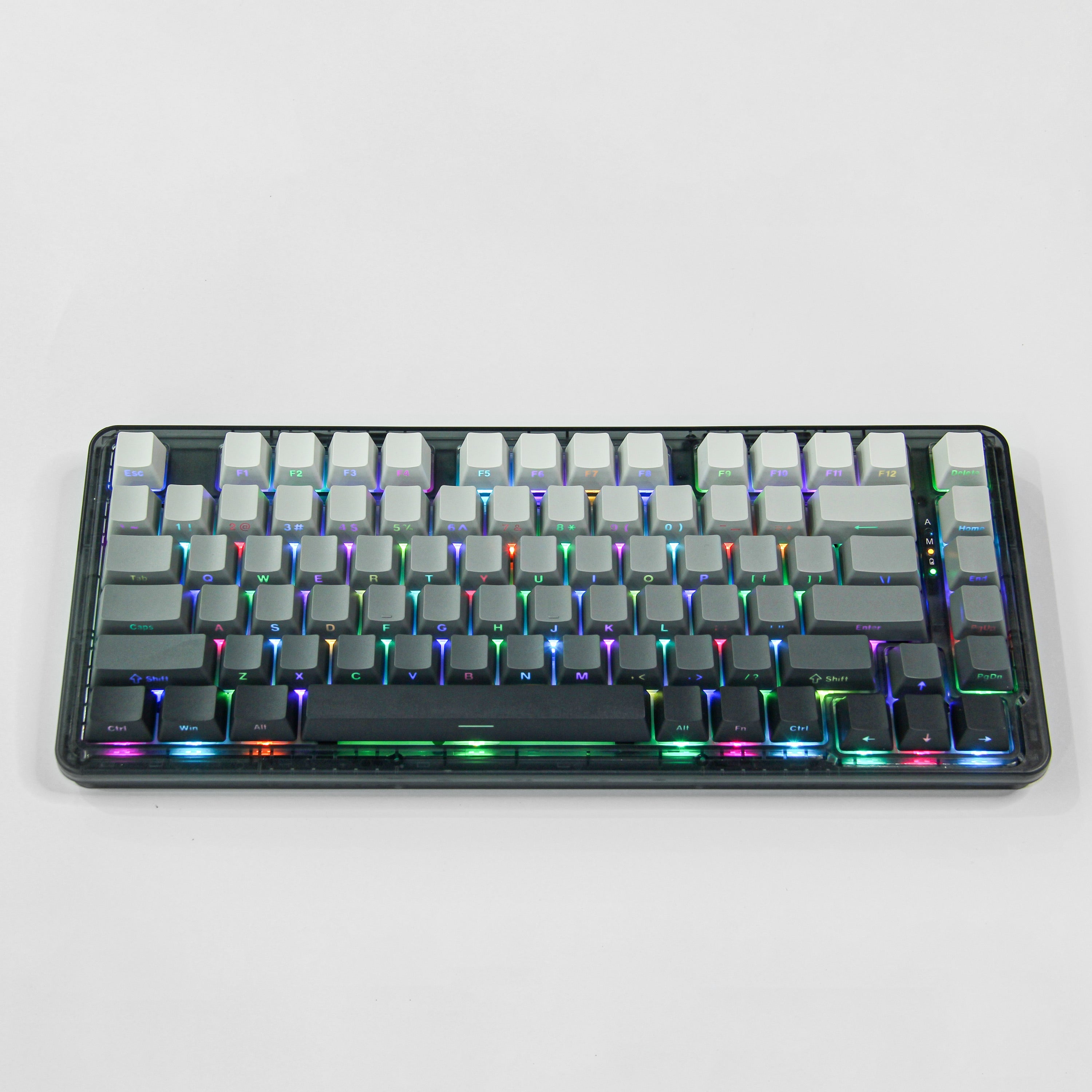 This keyboard provides three distinct methods of connectivity, consisting of wired, Bluetooth, and 2.4G connection. Its battery has an ultra-long standby time, lasting for 4-6 weeks after charging for 6.5 hours. Furthermore, the keyboard features a frosted transparent black case that gives it an elegant appearance, which looks even more impressive with the RGB lighting in the background.